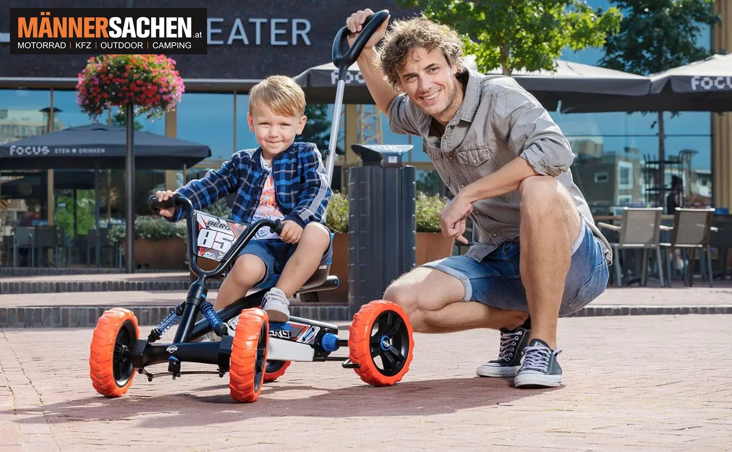 Mit Hilfe der Schubstange behältst du die Kontrolle über Pedal-Gokart und Kind.