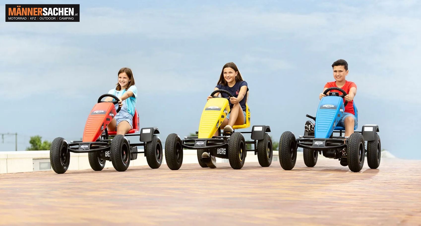 Der E-Pedal-Gokart von BERG ist mit einem beleuchteten Display ausgestattet, auf dem deine Geschwindigkeit, die bisher zurückgelegte Strecke und der Ladezustand des Akkus angezeigt werden.