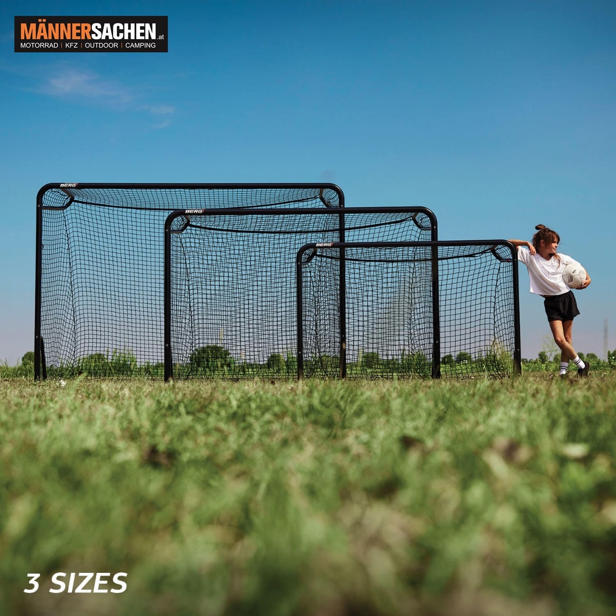 Für jeden Garten gibt es ein passendes SportsGoal, damit du deinen Ballsport ausüben kannst. Du kannst aus drei verschiedenen Größen wählen: Größe S mit 180 x 120 cm, Größe M mit 240 x 160 cm und Größe L mit 300 x 200 cm.