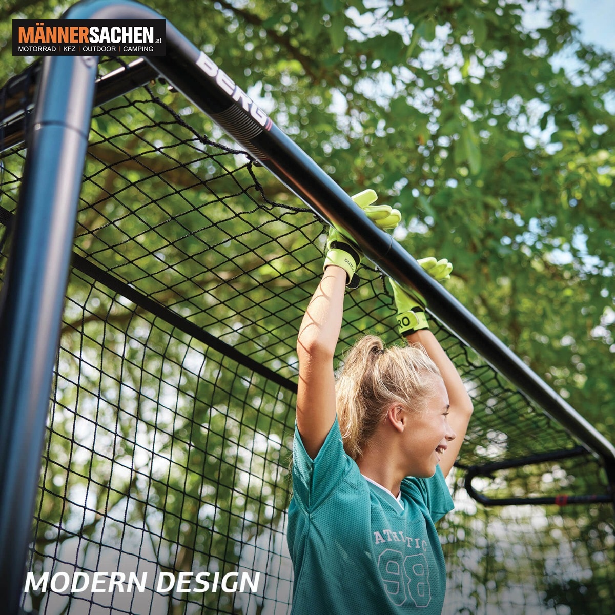 Mit seinem modernen Look passt das SportsGoal von Berg in jeden Garten. Der spezielle Rahmen sorgt dafür, dass das Netz immer richtig gespannt ist. Auf diese Weise kannst du den Ball hart in das Kreuzeck schießen!
