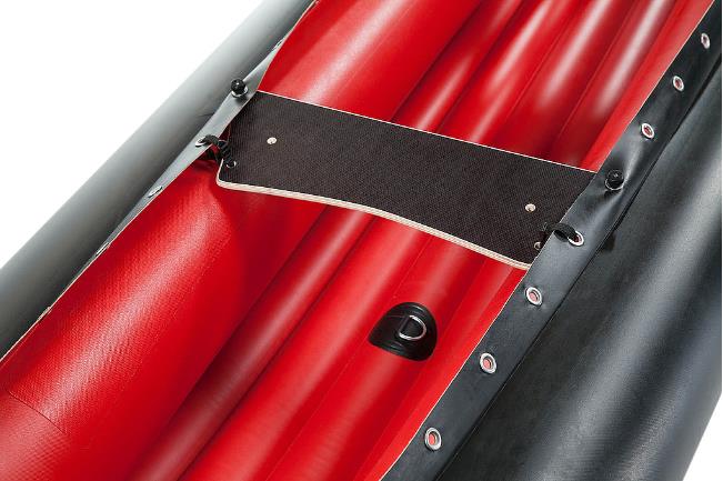 Die Kombination von schrägen Sitzbrettern und schlanker Innenbreite gewährleistet bequemes Knien bei optimalem Halt und Kontakt zum Boot; zum leichten „Aussteigen“ klappen die Bretter bei einer Kenterung hoch.