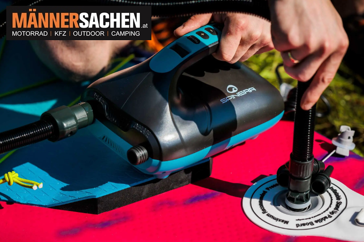 Entdecken Sie die Spinera Hochdruckpumpe mit 12V, die einen Druck von 20 PSI erreicht und perfekt für Ihr SUP und andere aufblasbare Gegenstände ist.