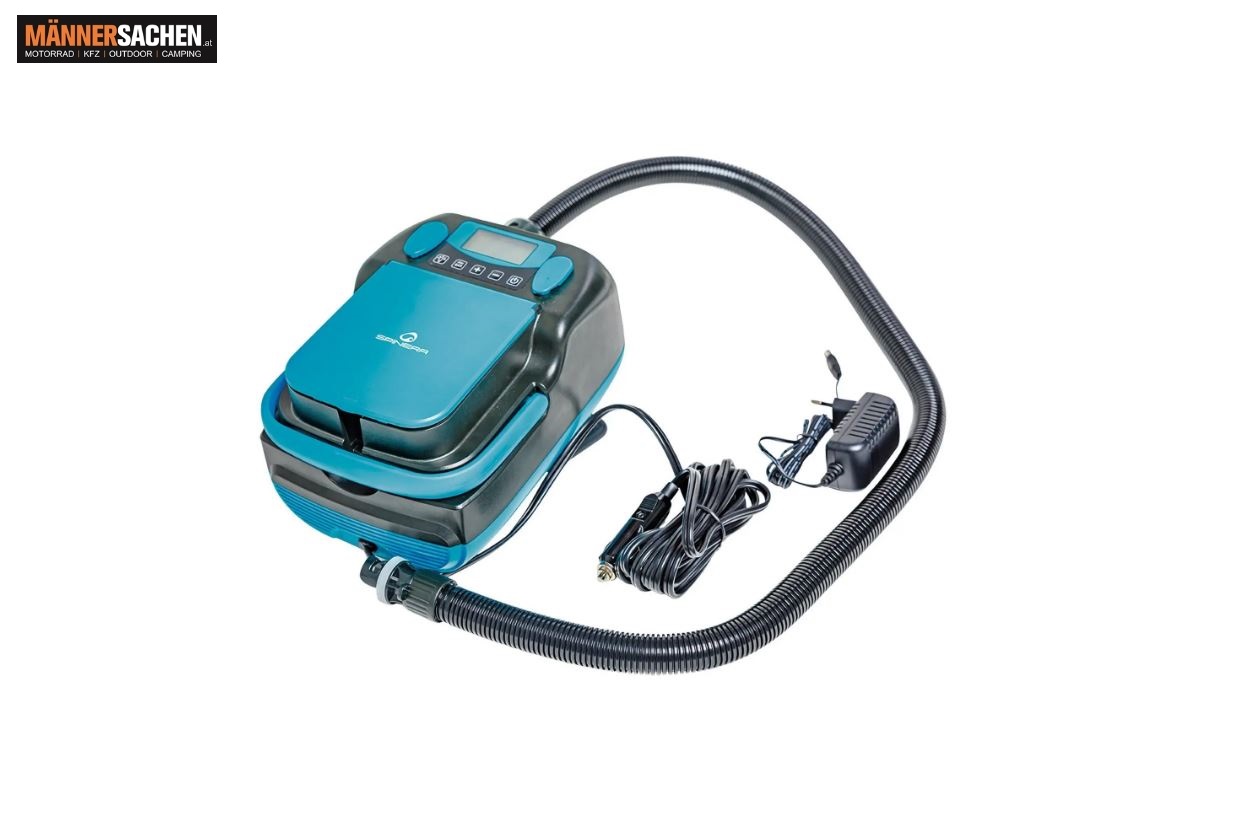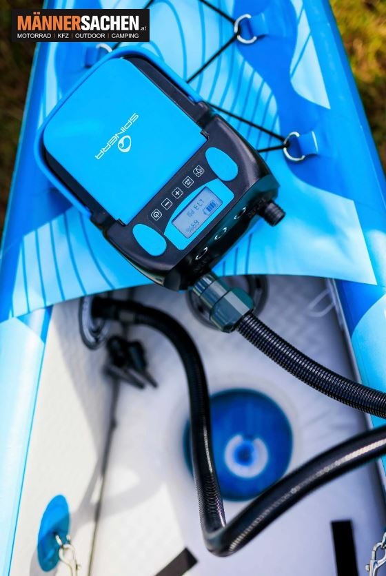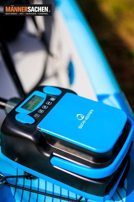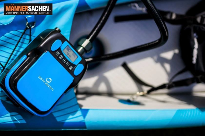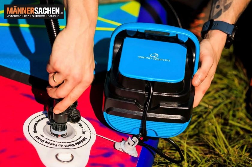 Vorstellung der Spinera Hochdruckpumpe mit 12V, die einen Druck von 16 PSI für alle Ihre aufblasbaren Bedürfnisse bietet.