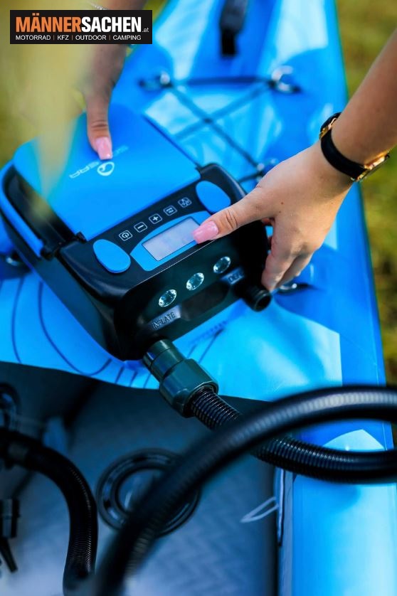 Mit einem vollen Akku können Sie ungefähr 3 oder mehr SUP-Boards aufpumpen und somit ausreichend Unterstützung für Ihre Wasserabenteuer bieten.