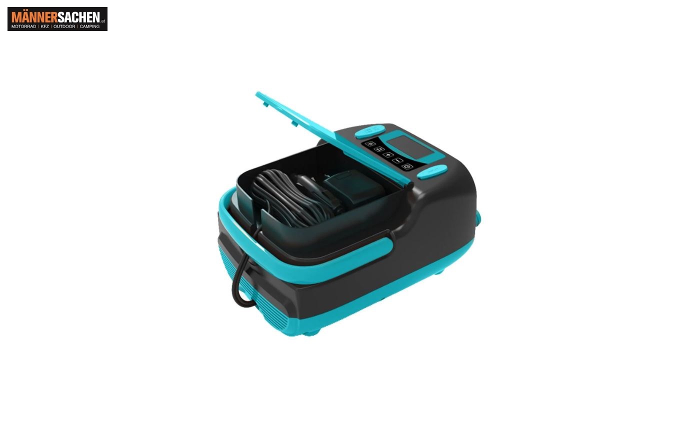 Zubehör: Luft-Schlauch 100cm / 12V DC Adapter / 220V AC Ladegerät mit europäischem Stecker / 5 verschiedene Ventil- Adapter, Tragetasche im Lieferumfang enthalten