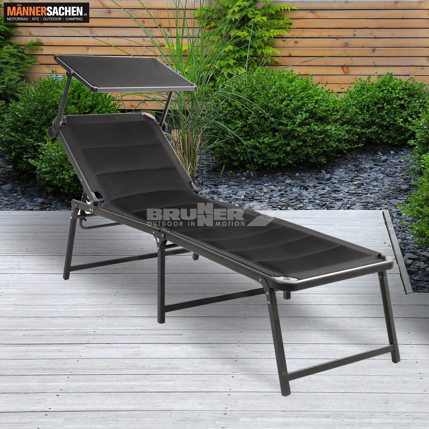 Hochwertige Sonnenliege mit pulverlackiertem Alu-Gestell und praktischem Sonnendach.