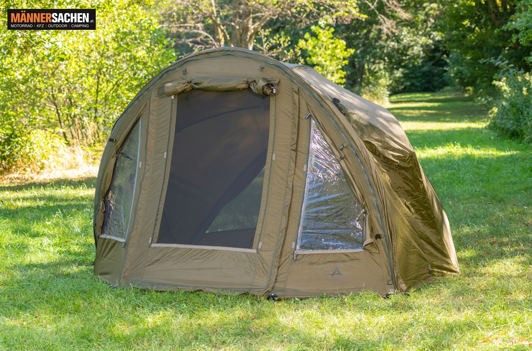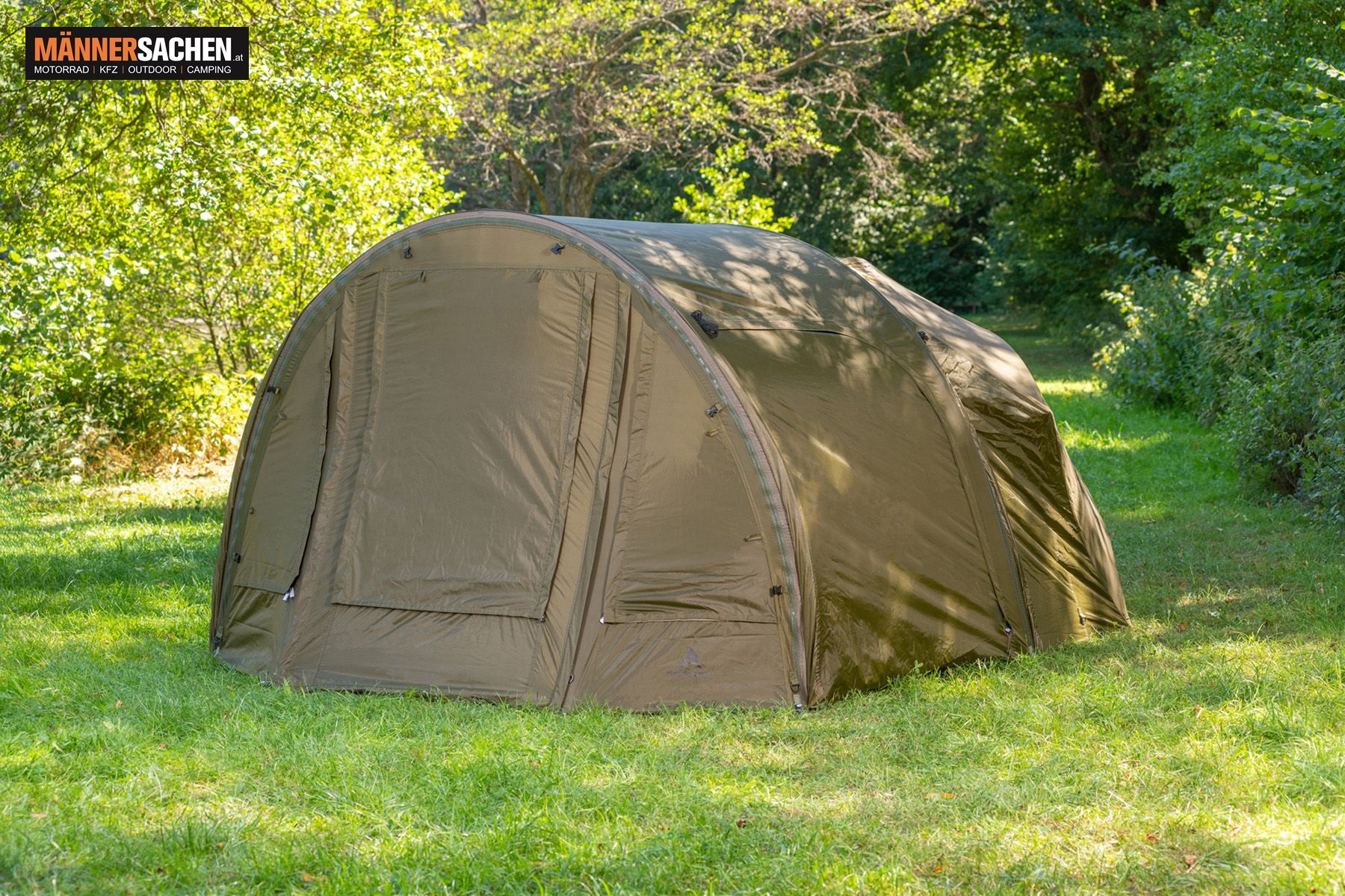 Dieses Zelt ist multifunktional einsetzbar und macht aus einem geräumigen Brolly im Handumdrehen ein großes 2-Mann Karpfenzelt mit langem Vorzelt und Front.