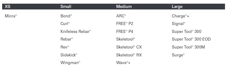 Groß: Charge+, Free P4, Signal, Super Tool 300, Super Tool 300 EOD, Super Tool 300M, Surge