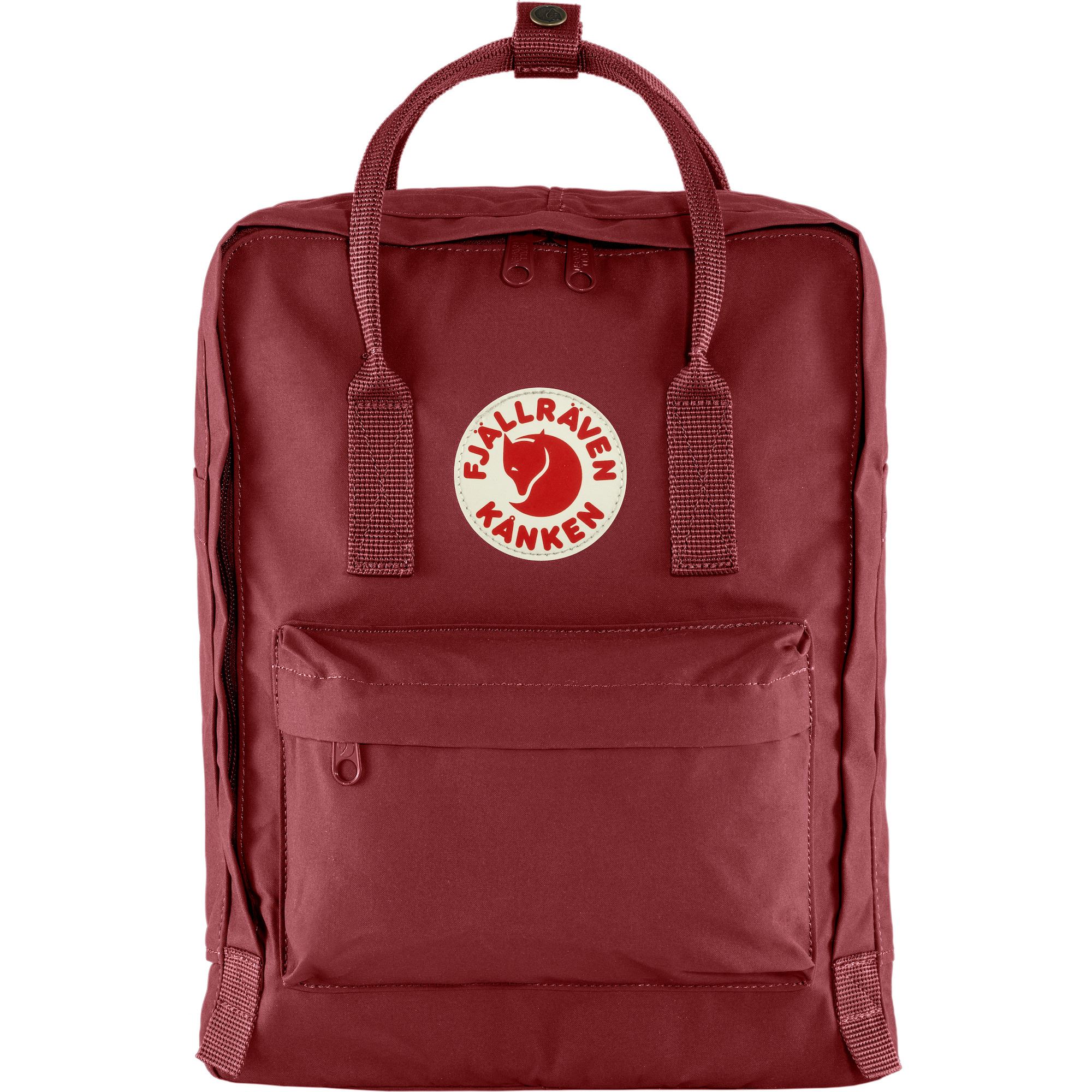 Klassischer Kånken-Rucksack aus strapazierfähigem Vinylon mit Reißverschluss zum Öffnen des gesamten Hauptfachs.