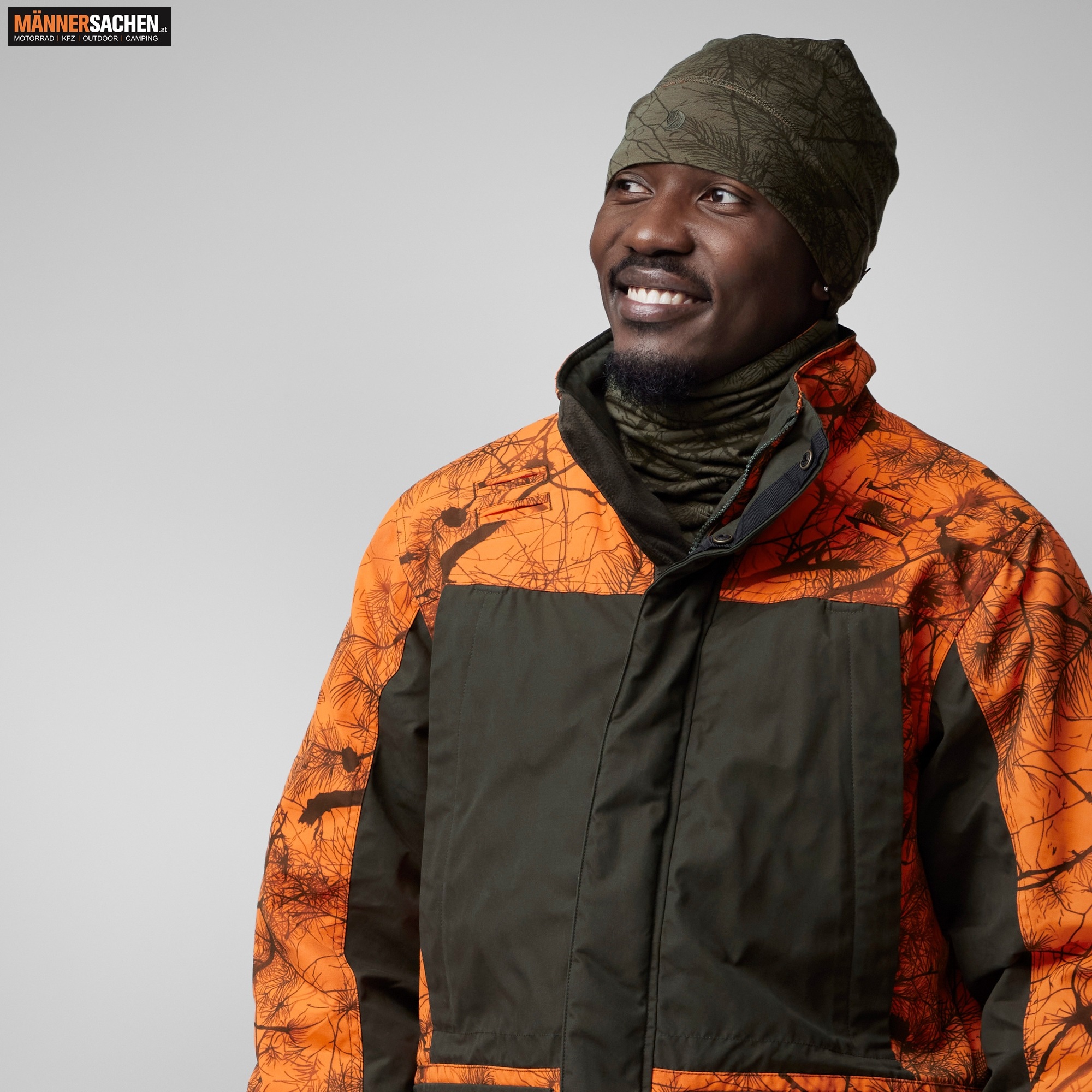 - Grünes Tarnmuster auf einer Seite und gut sichtbares Tarnmuster in Warnorange auf der anderen Seite.