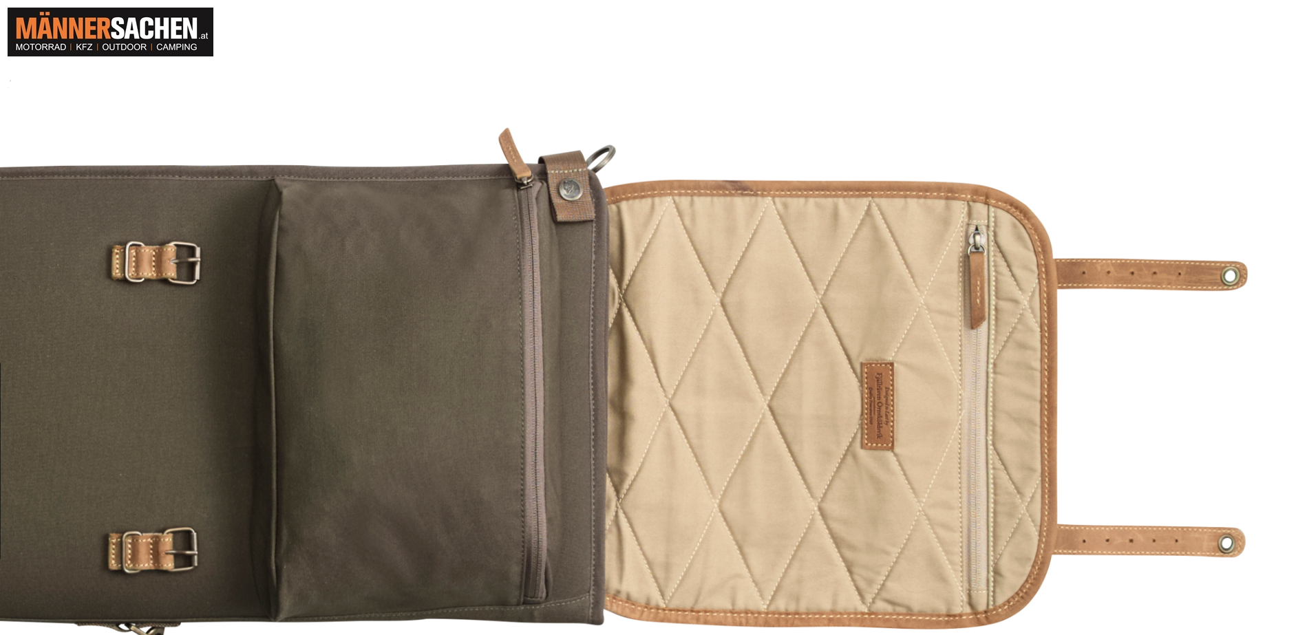 Die Tasche lässt sich vollständig öffnen und kann dank verstellbarem Haltegurt sicher transportiert werden.