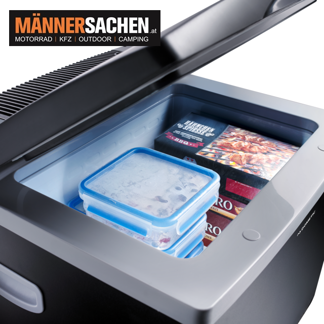 Tragbare Hybrid-Kühl- und Gefrierbox mit 40 Litern Inhalt und stufenloser Temperaturregelung.