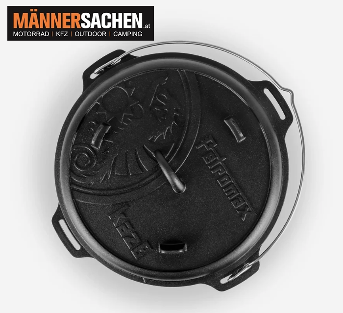 Ob am Lagerfeuer, Herd oder Atago: Der gusseiserne Kessel mit Edelstahlhenkel und Deckel macht jede Feuerstelle zur Gourmet-Station.