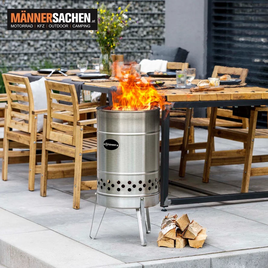 Erlebe das Abenteuer direkt in deinem Garten oder auf der Terrasse mit der Feuertonne Pyron. Ob allein oder in geselliger Runde – genieße die beruhigende Atmosphäre des Feuers und warme, entspannte Abende im Freien.Die Feuertonne Pyron kombiniert robustes Design mit modernster Technik. Sie bietet ein raucharmes Feuer mit maximalem Komfort und einem präzisen Luftzufuhrsystem für eine saubere Verbrennung. Der Betrieb mit Scheitholz ermöglicht ein authentisches Flammenspiel und eine angenehme Wärmestrahlung.