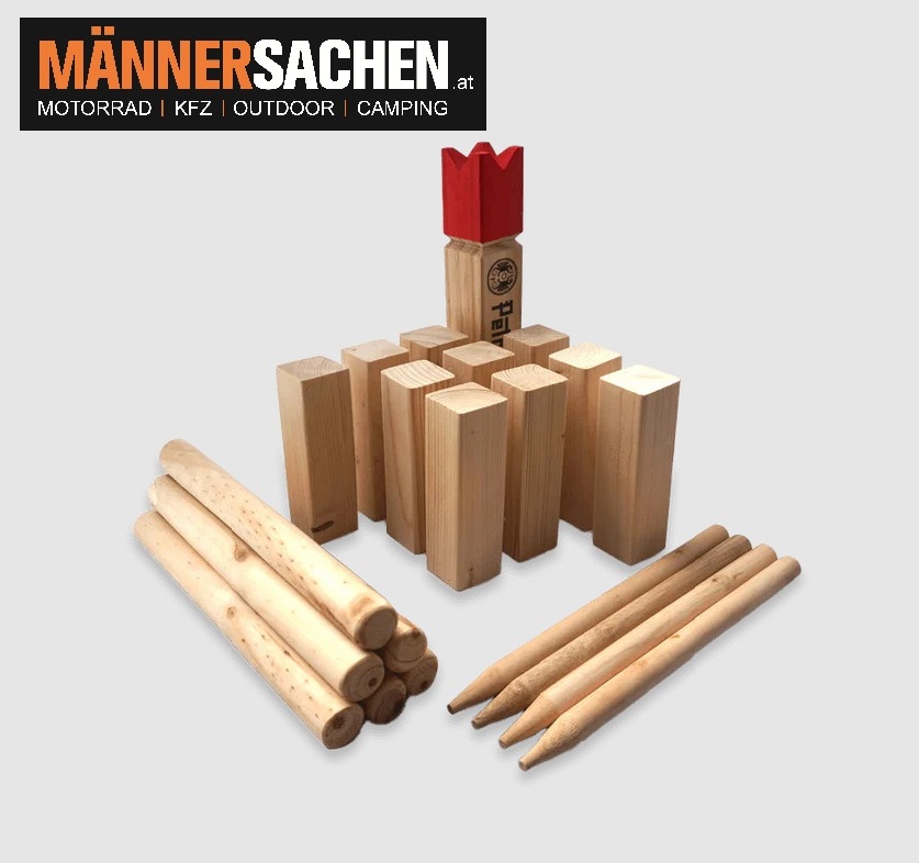 Das 21-teilige Set besteht aus zehn Kubbs, sechs Wurfhölzern, vier Begrenzungsstäben und einem stattlichen König. Verpackt in einem praktischen Tragebeutel aus Baumwolle, hast du dein Outdoor-Schach immer griffbereit – für spontane Matches unterwegs oder geplante Turniere unter freiem Himmel.