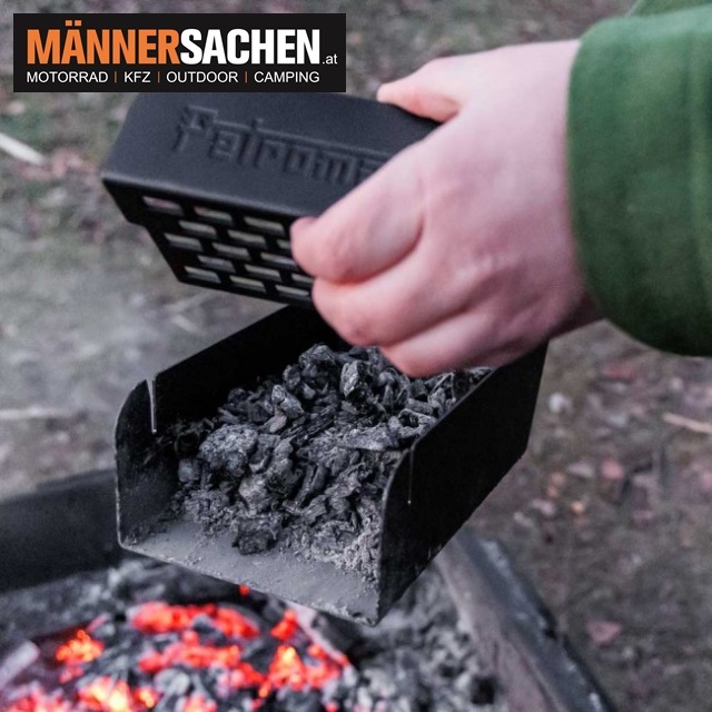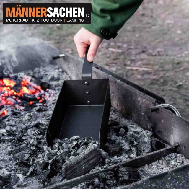 Die Petromax Kohleschaufel ermöglicht schnelles Befüllen von Grill und Feuerstelle sowie einfaches Reinigen nach dem Kochen.