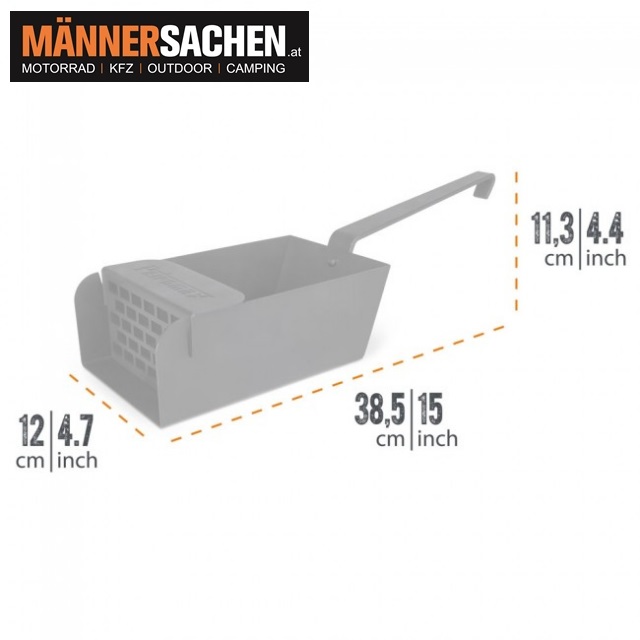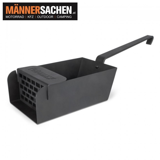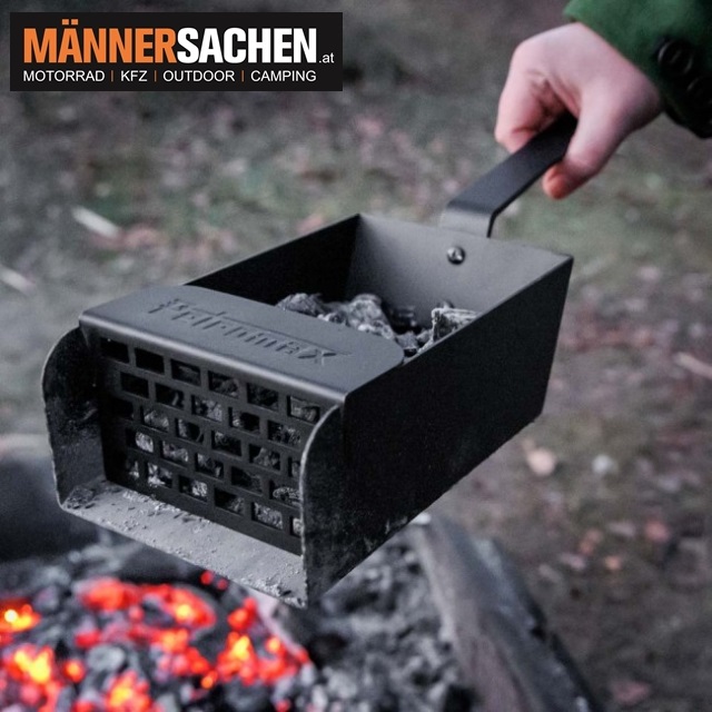 Mit ihren hohen Seitenrändern nimmt sie mühelos viele Kohlen und Briketts auf.