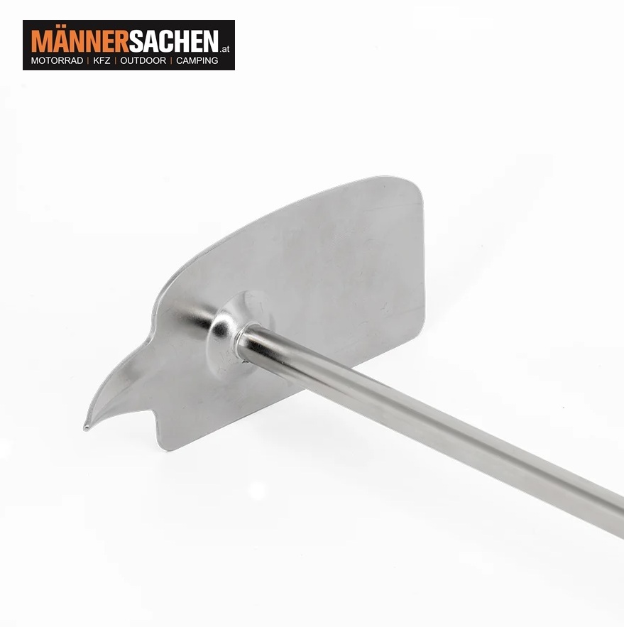 Die robuste Edelstahlzange bietet dank durchgehender Zähne einen festen Halt, sodass du Holz und Kohle mühelos greifen, platzieren und nachlegen kannst. Der Schürhaken mit integriertem Schaufelblech erleichtert das Verteilen von Glut und Asche und ist perfekt auf die Innenradien der Petromax Feuerstellen abgestimmt.