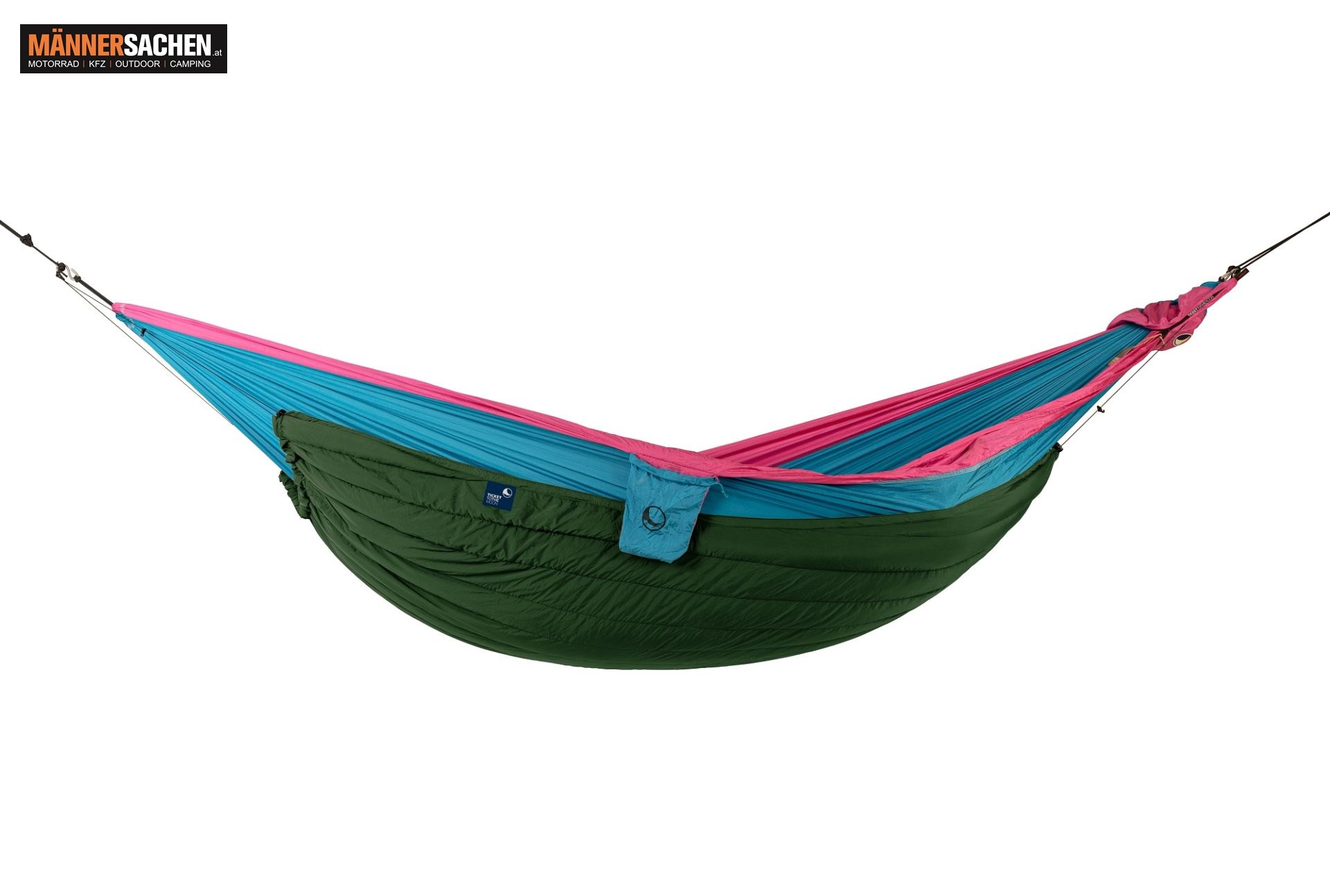Ticket to the moon TTTM HÄNGEMATTE mit Moskitonetz MODELL : "Original Pro Hängematte" mit Moskitonetz FARBE : aqua ( 15 ) Dimensionen: 325 cm x 200 cm ( Tuchlänge: 310 cm ) Gewicht: 950 g Max. Belastung: 150 kg Produktinformationen : Die Original Pro ist die "Rundum-Sorglos-Lösung" für das Schlafen im Freien. Somit schafft auch die Original Pro Hängematte den Spagat zwischen Funktionalität und Komfort mühelos! Multifunktionstalent Für ungestörte Nächte sorgt auch hier ein integriertes Moskitonetz, welches sich schnell im mitgelieferten Organizer-Beutel der Ridgeline verstauen lässt. Mit diesem stufenlos verstellbaren “Abstandhalter” wirst du immer in deine persönliche Lieblingsposition finden. Zudem kannst du dank der vier Reisverschlussläufer jederzeit bequem von beiden Seiten in deine Hängematte einsteigen. Mit externen Schlaufen hast du nicht nur die Möglichkeit einen Underquilt anzubringen, sondern kannst auch deine (leichte) Ausrüstung daran befestigen oder sie als Abspannpunkte verwenden.  Extra Breite für mehr Komfort Im Gegensatz zur Light-Version bietet dir die Original Pro noch mehr Platz, um dich erholsam in den Schlaf zu schaukeln. Außerdem wird sie aus unserem seit 1996 erprobten Standard Material gefertigt, was sie einerseits weniger dehnbar und andererseits noch robuster macht. Dadurch eignet sie sich auch hervorragend für größere oder schwerere Menschen sowie für Paare, die sich gemeinsam von diesem vielseitigen Platzwunder verzaubern lassen wollen!  Produktspezifikationen: Atmungsaktive Fallschirmseide (64g/m²) Moskitonetz mit 200 Löchern/cm2 inkl. 4 Reißverschlussläufern für einfachen beidseitigen Zugang Integrierte strukturelle Ridgeline 3mm UHMWPE 2,8m +-10cm Ridgeline Organizer / Aufbewahrungstasche für Moskitonetz und andere Ausrüstung Externe Schlaufen zum Fixieren eines Underquilts, zum Befestigen von Ausrüstung oder als Abspannpunkt Kommt in unserer Express-Settingtasche PFC, nein danke! und OEKO-TEX®Standard 100 zertifiziert Inkl. 2 x 6kN Karabiner  Empfohlene Aufhängungen (nicht enthalten): Moon Straps