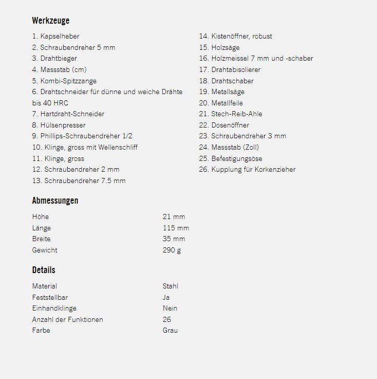 - Multi-Tool mit 26 Funktionen, hergestellt in der Schweiz
