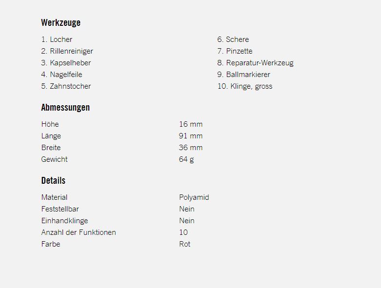 - Sportwerkzeug mit 10 Funktionen, hergestellt in der Schweiz