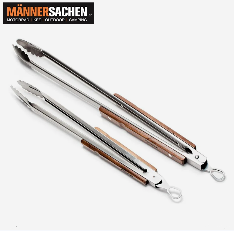 - Grillzange: Greifen und Platzieren des Grillguts und der Kohle oder Briketts