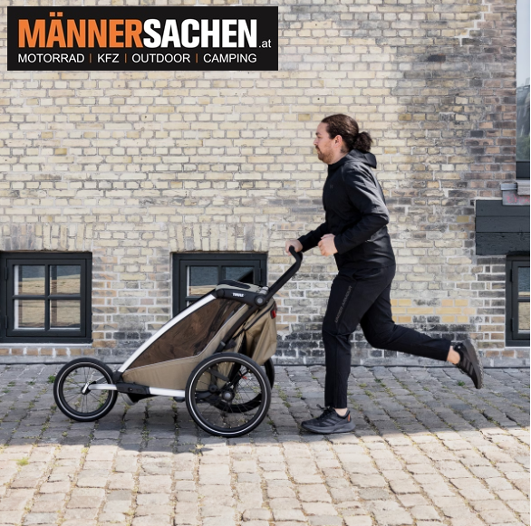 THULE Chariot Sport 2 single Multisport-Fahrradanhänger Einsitzer  erhältliche Farben: schwarz (10201030) oder natural gold (10201032) Der modulare Fahrradanhänger und Jogging-Kinderwagen in einem – für das Training in allen Jahreszeiten sowie mühelose alltägliche Fahrten. Technische Daten : Maximales Gewicht des Kindes: 22 kg Maximale Tragkraft des Kindertransporters: 34 kg Maße zusammengeklappt: 86.3 x 63.3 x 37.5 cm Gewicht: 15.7 kg Schulterbreite: 40.5 cm Sitzhöhe: 64 cm Kompatible Türbreite: 65.1 cm Sicherheitsgurt: 5-Punkt Erfüllt die Sicherheitsnormen: ja   Eigenschaften : - Für Deine Aktivitäten entwickelt 4 Aktivitäten – speziell entwickelt zum Radfahren, Joggen, Spazieren und Skifahren (Jogging- und Skisets separat erhältlich). Das mitgelieferte Regenverdeck und die Sonnenblende halten Dein Kind trocken und schützen es vor der Sonne. - Modernes Design mit hochsichtbarer LED-Beleuchtung Integriertes LED-Licht, betrieben durch die Thule Powerbank 10k (separat erhältlich) für bessere Sichtbarkeit unter allen Bedingungen - Per Handhebel zu bedienende Scheibenbremsen Für mehr Kontrolle in steilem Gelände und beim Laufen - Vollständig gepolsterter Liegesitz Praktische, mit einer Hand einstellbare Liegeposition und vollständig gepolsterter Sitz für ein Nickerchen unterwegs - Einfach von einer Aktivität zur anderen wechseln Das neu gestaltete FlipWing-System ermöglicht einen noch einfacheren Wechsel zwischen Radfahren und Spazieren, da die Räder jetzt nach oben und unten geklappt werden können, während der Anhänger am Fahrrad befestigt ist - Befestigung der Deichsel mit einer Hand Mit der neuen Deichsel kann der Anhänger einfach und sicher mit einer Hand am Fahrrad befestigt und wieder abmontiert werden - Einstellbare Federung Einstellbare Federung, damit Du den Komfort der Fahrt individuell anpassen kannst, wenn Dein Kind wächst oder Du schwere Gegenstände im Anhänger transportierst - XL-Gepäckstauraum Großer Gepäckkorb mit Reißverschluss zur sicheren Aufbewahrung von Gegenständen, der für mehr Beinfreiheit beim Joggen verstaut werden kann - Kompakt zusammenklappbar Dank des kompakten und benutzerfreundlichen Klappmechanismus lässt sich das Produkt einfacher denn je transportieren - Klimatisierter Innenraum Klimatisierter Innenraum mit herausnehmbaren Fenstern und mehrfach verstellbarer Sonnenblende. Belüftungsöffnungen sorgen für eine optimale Luftzirkulation und Klimaregulierung, abnehmbare Klemmen sorgen für mehr Belüftung bei Verwendung eines Regenverdecks - Praktische Aufbewahrung Die Thule Click n’ Store bietet eine praktische Aufbewahrung der Spazier-, Jogging- und Radfahrsets am Kinderwagen, während eine andere Aktivität ausgeführt wird - Einfache Pflege Die komfortablen gepolsterten Sitze sind abnehmbar und leicht zu reinigen    Wir autorisierter THULE Fachhändler. Bei weiteren Fragen stehen wir Ihnen gerne telefonisch oder per Mail zur Verfügung. 0676 - 9119990  office@maennersachen.at