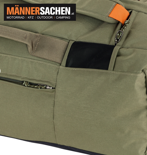 Das Hauptfach der Färden Duffel 80 ist abschließbar, außen befindet sich eine Reißverschlusstasche.