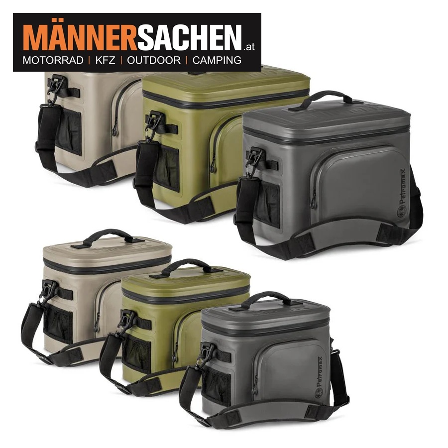 PETROMAX KÜHLTASCHE INHALT : 8 Liter Farben : grün / grau / sand  Die Petromax Kühltasche gehört zu deiner Grundausstattung, um draußen 4 Tage bzw. 6 Tage unabhängig von Akku und Strom zu sein. Die Kühltasche hält Speisen und Getränke tagelang frisch und ermöglicht durch ihre einsatztauglichen Farben Verpflegung bei der Jagd, bei Bootstouren, beim Camping, Angelsport und beim Abenteuer-Picknick. Mit Hilfe des wasserabweisenden Polyestergewebes und des wasserdichten Reißverschlusses bleiben Eiswürfel und Kühlakkus sicher in der Kühltasche verstaut und kühlen zuverlässig Fleisch, Gemüse und Getränke. Durch den Schultergurt und die Tragegriffe kannst du die Tasche einfach überallhin mitnehmen. Die Petromax Kühltasche kannst du mittels Ösen für Karabiner und Co. im Boot oder Auto sicher befestigen. Die vier separaten Taschen bieten Platz für kleine Ausrüstungsgegenstände, wie z.B. den Dreibein-Ring, Anzündmaterial oder Feuerzeug. Dank des Flaschenöffners kannst du Kronkorken direkt an der Tasche öffnen. Die Petromax Kühltasche ist in drei Farben und zwei Größen erhältlich. Die kleine Kühltasche kannst du mit bis zu 4 kg Eiswürfeln und die große Kühltasche mit bis zu 10 kg Eiswürfeln füllen. 6 x 0,5 l-Flaschen bzw. 4 x 1,5 l-Flaschen finden Platz. Herausragend ist die Kühldauer der Kühltaschen: 4 bzw. 6 Tage können Abenteurer in der Natur verweilen und ein komplettes Abenteurermenü unter freiem Himmel kochen.  In 3 Farben lieferbar. Auch mit 22 Liter Volumen verfügbar! Für Fragen stehe ich sehr gerne zur Verfügung ! 0676 9119990