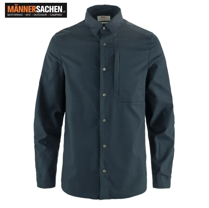 FJÄLLRÄVEN Keb Trekking Shirt LS M   erhältliche Farben: Dark Navy, Laurel Green  erhältliche Größen: XS, S, M, L, XL, XXL Viele Varianten lagernd - alle Varianten bestellbar !  Funktionelles Trekkinghemd aus 100 % recyceltem Polyester mit Verstärkungen aus G-1000 Air Stretch. Ohne PFAS-Einsatz produziert. Leichtes, strapazierfähiges und dehnbares Trekkinghemd. Material aus recyceltem Polyester mit mechanischem Stretch. Verstärkungen aus G-1000 Air Stretch. Ärmeleinsätze mit Druckknöpfen. Brusttasche mit Reißverschluss.   Langärmliges Trekkinghemd für Herren aus 100 % recyceltem Polyester mit mechanischem Stretch für höheren Tragekomfort und G-1000 Air Stretch-Verstärkungen an Ellbogen, Kragen und Passe für Langlebigkeit. Dieses Hemd ist ebenso leicht, bequem und dehnbar wie robust und langlebig. Zu den vielen funktionellen Details gehören der hochklappbare und fixierbare Kragen, ein zusätzlicher Sonnenschutzkragen, Zwickel an den Manschetten mit Knopfverstellung, leichte und langlebige Kunststoff-Druckknöpfe sowie eine Brusttasche mit Reißverschluss.   Produkteigenschaften :  Aktivitäten: Trekking Eigenschaften: Langlebig, Stretch Material: 54% Polyester (recycelt), 46% Polyester Verstärkung: G-1000® Air Stretch: 52 % Polyester (recycelt), 13 % Polyester (T400), 35 % Baumwolle (Bio) Rückenlänge: 79 cm Gewicht: 280 g (Gewogen in Größen M)  Passform: Regular Fit Ärmeltyp: Langarm Verschluss: Druckknöpfe Kleidungsschicht: Basisschicht Anzahl der Taschen: 1 (Brusttasche mit Reißverschluss) Verstärkte Bereiche: Schultern, Ellbogen Waschen: 40 °C Normalreinigung ( Keinen Weichspüler verwenden, Mit ähnlichen Farben waschen ) Bügeln: Bügeln Stufe 1 – max. 110 °C   Bei weiteren Fragen einfach anrufen oder eine Mail schreiben! 0676 - 9119990 office@maennersachen.at