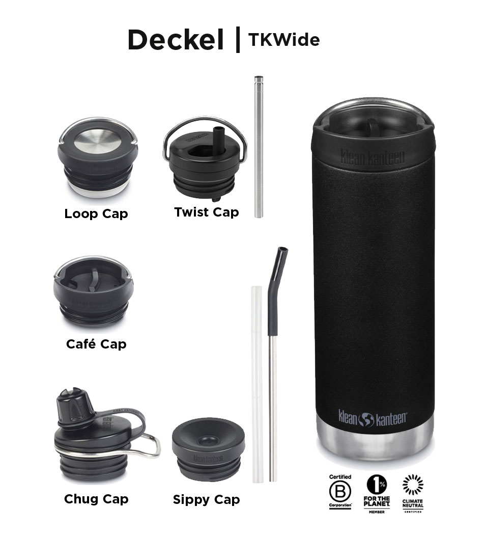 MODELL : TK Wide  INHALT : 946 ml Farbe: Black Extra große Öffnung Optimale Thermoleistung Schadstofffrei Auslaufsicher Spülmaschinengeeignet Klimaneutral   Isolierflasche aus 90% zertifiziertem recyceltem Edelstahl Dank des Recycling-Edelstahls reduzieren wir bis zu 50% der Treibhausgasemissionen aus Edelstahl Seit Frühjahr 2022 haben wir damit begonnen als erstes Unternehmen, unsere Produkte aus zertifiziertem 18/8-Edelstahl herzustellen, der zu 90% aus recyceltem Post-Consumer-Edelstahl besteht. Diese monumentale Änderung wird unsere Treibhausgasemissionen aus Edelstahl um 50% reduzieren. Bis 2023 werden 95% unserer Produkte aus unserem neuen recycelten Stahl hergestellt.   Vorteile unserer TKWide Edelstahl Isolierflaschen - Climate Lock Vakuumisolierung: Hält Stunden lang heiß oder kalt - Hergestellt aus 90% zertifiziertem recyceltem 18/8 Edelstahl: Das spart CO2 - Erhöhte Thermoleistung durch Verschlusssystem TK Closure™ mit speziellem Innengewinde - Absplitterfeste Klean Coat Pulverbeschichtung - 18/8 lebensmittelechter Edelstahl: Gibt Geschmäcker weder ab, noch nimmt es diese auf - BPA-frei - Spülmaschinengeeignet - Chug Cap: Auslaufsicher (auch bei Kohlensäure), leicht zu zerlegen und zu reinigen   Eigenschaften Klean Coat Pulverbeschichtung: ja Erscheinungsjahr: 2022 Auslaufsicher: ja Füllmenge: 946 ml (32 oz) Gewicht (mit Deckel): 530.8 g Hält eiskalt 0 - 13 °C: 75 Stunden Hält heiß 49 - 88 °C: 22 Stunden Material: 18/8 Edelstahl (davon 90% zertifizierter recycelter Edelstahl), BPA-freies Polypropylen, Silikon Isolierung: Climate Lock Vakuumisolierung Abmessungen: 294.2 mm H x 92.7 mm W Durchmesser Öffnung: 66 mm Spülmaschinengeeignet: ja Spülmaschinengeeignet Deckel: ja Geeignet für kohlensäurehaltige Getränke: nein Farbe: Black (schwarz), Brushed Stainless (Edelstahl gebürstet), Marigold (gelb)   Artikel Nummer: 71359   Bei weiteren Fragen stehen wir Ihnen gerne telefonisch oder per Mail zur Verfügung. 0676 - 9119990  office@maennersachen.at