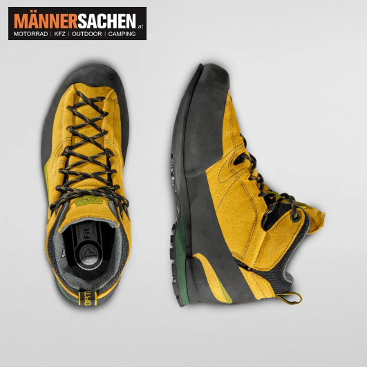 Leichtes Modell mit Mid-Schnitt, wasserfest und atmungsaktiv, empfohlen für technische Zustiege und Trekking. Besonders geeignet für Aktivitäten als Bergführer und -retter.