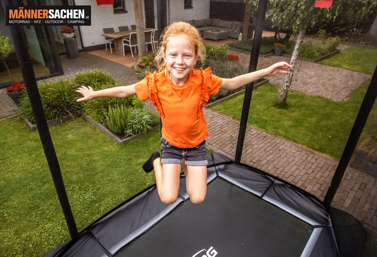 Sicherheit steht über allem anderen. Wenn du außerhalb des Sprungtuchs landest, fängt dich der UV-beständige Schutzrand auf.