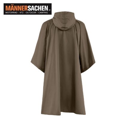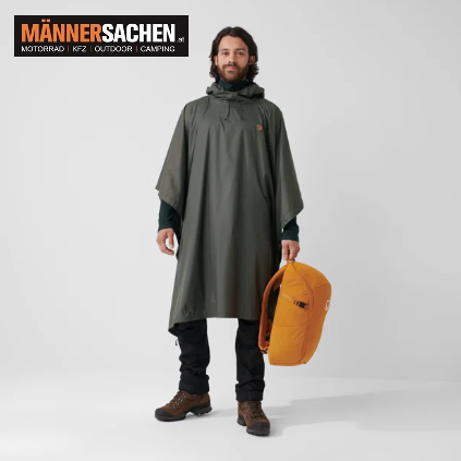 Langer Poncho mit Kapuze, der während der Wanderung auch über dem Rucksack getragen werden kann.