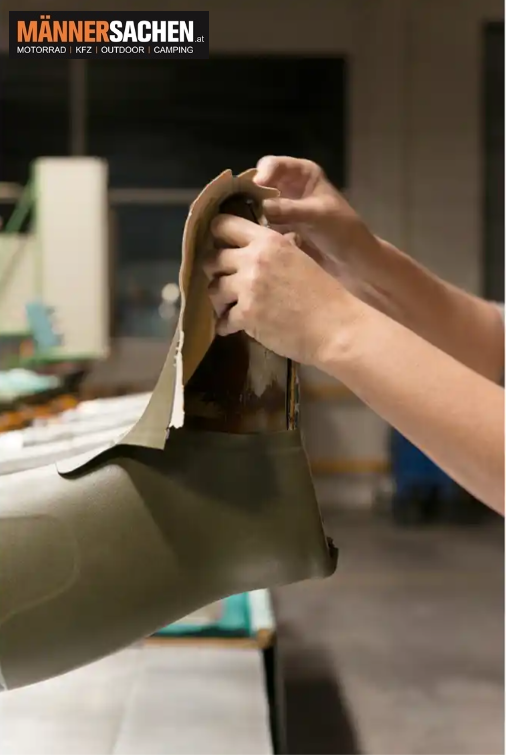Der Stiefel wird von Meistern in der Gummiverarbeitung in Frankreich von Hand konfektioniert.