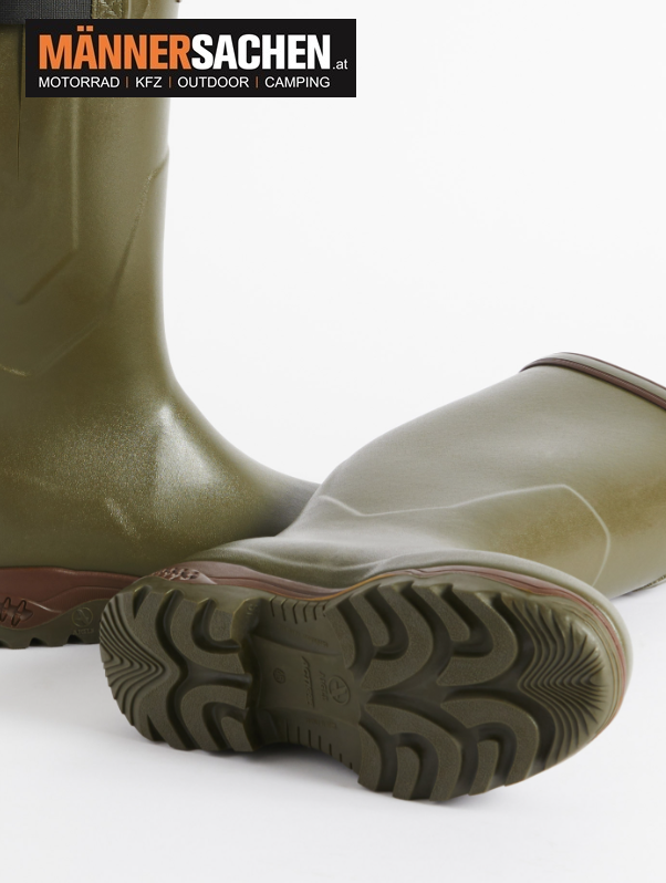 Modell: CHAMBORD PRO 2  erhältliche Farben: Ambre, Kaki • STARK HAFTEND • HERGESTELLT AUS NATURKAUTSCHUK    Für die Arbeit entworfen, ist dieser Stiefel bequem und strapazierfähig. Seine Sohle ermöglicht optimalen Halt auf allen Untergründen. Diese Stiefel sind für Fachleute bestimmt und eignen sich für den regelmäßigen Gebrauch, insbesondere im Wald. Schnelltrocknendes Futter • Selbstreinigende Außensohle mit Profil • Grip und Dämpfung.   Obermaterial: Überwiegender Naturkautschuk. Futter: 100% Polyamid. Außensohle: Kautschuk.   Vorteile Selbstreinigendes Profil Das Design der Sohle spielt eine wichtige Rolle. Bei diesem Modell wurde es speziell entwickelt, um Erde und Kieselsteine beim Gehen auf natürliche Weise loszuwerden. Vollständige Undurchlässigkeit Der Stiefel besteht aus Naturkautschuk und garantiert eine vollständige Wasserundurchlässigkeit. Nicht ein Paar schlüpft uns durch die Maschen: Die Wasserundurchlässigkeit jedes hergestellten Stiefelpaares wird getestet! Der Stiefel wird mit Luft gefüllt und dann ins Wasser getaucht. Wenn keine Blase erscheint, erfüllt er seine Funktionen und ist einsatzbereit. Breite Waden Der Stiefel wurde mit einer großzügigeren Form entworfen, damit er sich auch breiteren Waden bei maximalem Komfort anpassen kann.   Die technischen Vorteile dieses Produkts STARK HAFTEND Die Mischung der Sohle ist auf optimalen Grip und erhöhte Langlebigkeit der Sohle ausgelegt: Ideal für rutschige Oberflächen und weiche Böden.   Bei weiteren Fragen stehen wir Ihnen gerne telefonisch oder per Mail zur Verfügung. 0676 - 9119990  office@maennersachen.at