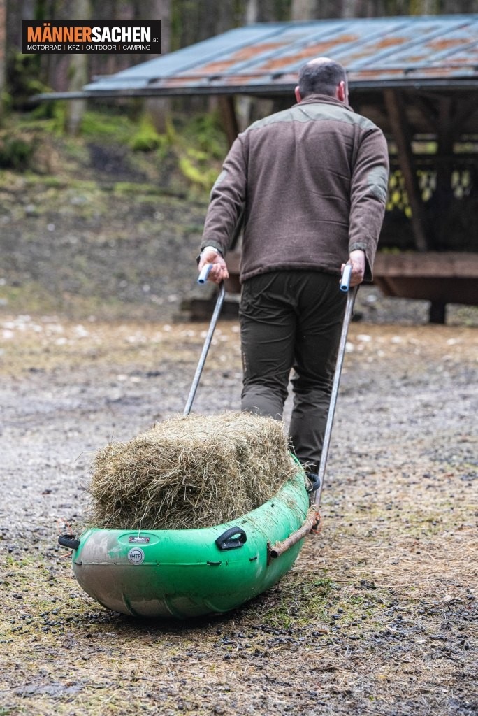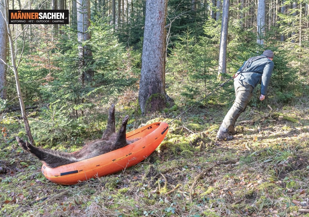 Mit Unterstützung durch die optional erhältliche Bergehilfe, welche sich auch als Tragesystem verwenden lässt, kann das Wild komfortabel geborgen werden.