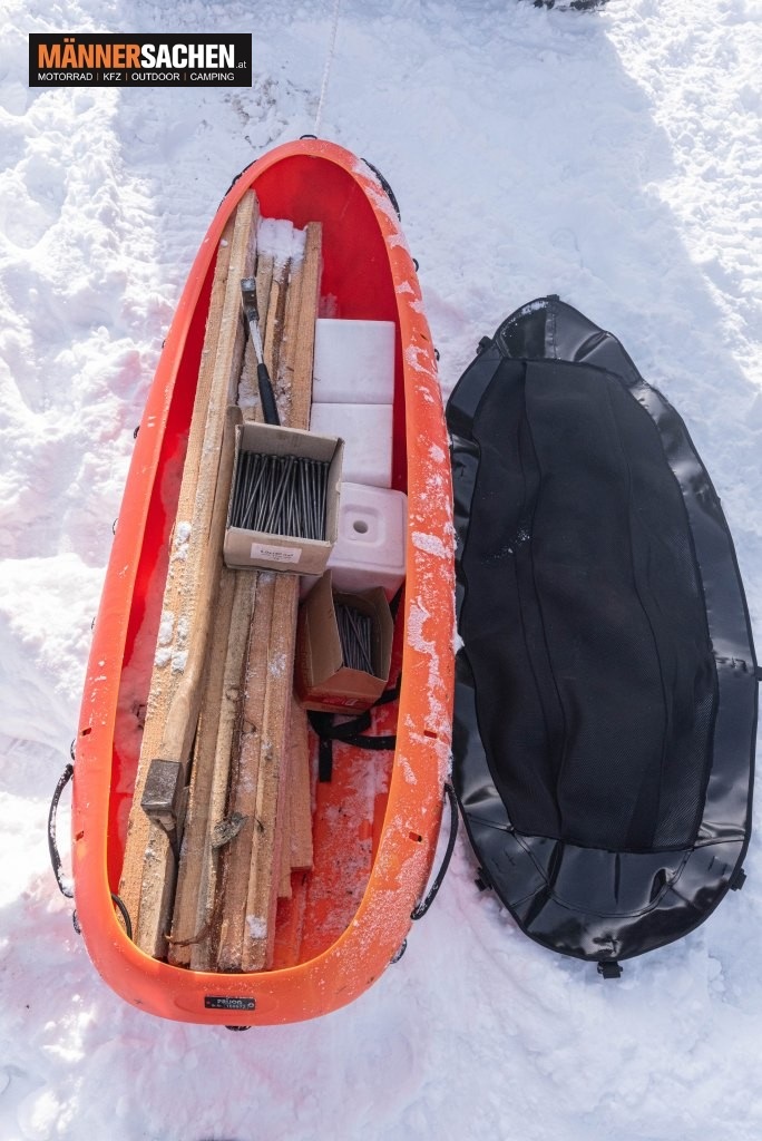 Optional können die Stangen auch vorne montiert werden, um den Waldbob zu ziehen.