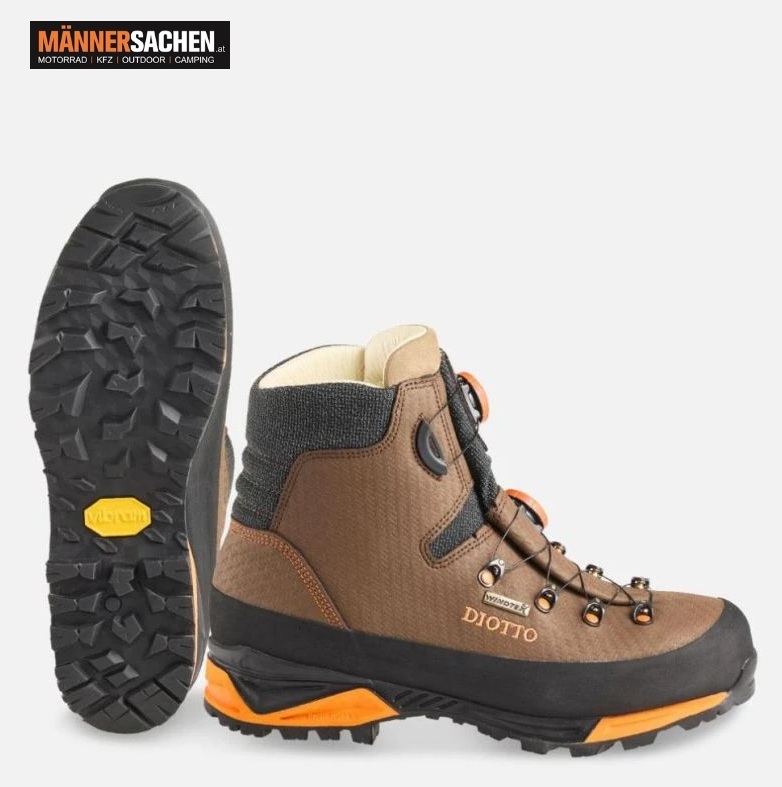 Die patentierte DIOTTO-Konstruktion mit überlappender Lederfalte schützt zusätzlich vor Kratzern und verhindert das Eindringen von Schmutz und Feuchtigkeit. Ein seitlicher Gummischutzrand absorbiert Stöße und verlängert die Lebensdauer der Stiefel – ideal für lange Einsätze im Gebirge, im Wald oder auf unebenem Gelände.