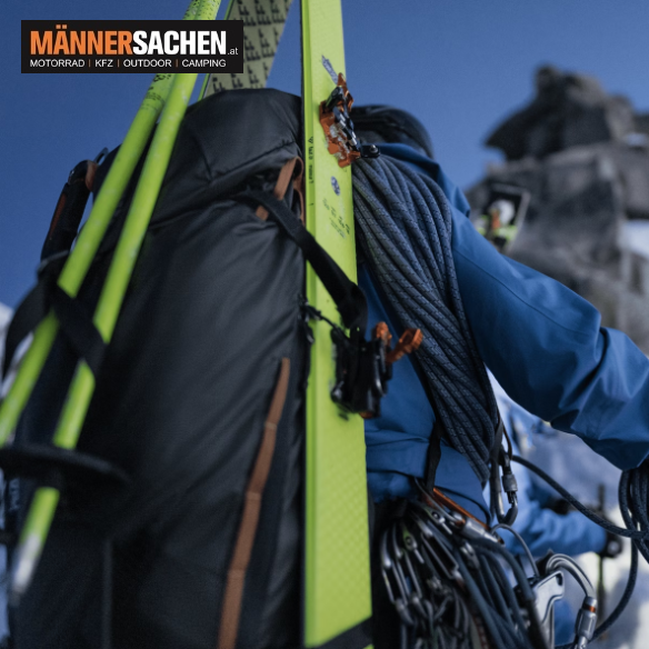Ein schnittiger Rucksack, perfekt zum Skifahren, Bergsteigen und Klettern.