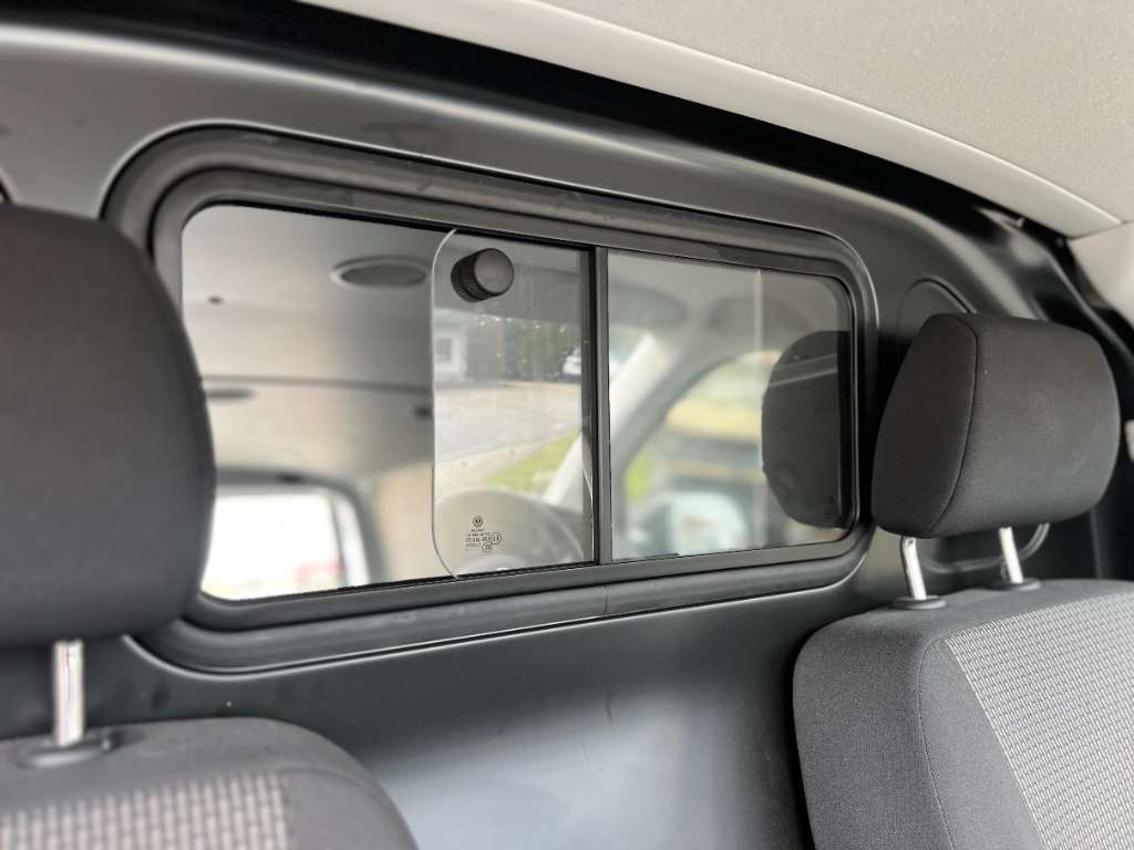 Hohe Trennwand mit Schiebefenster sowie 8 Verzurrösen zur