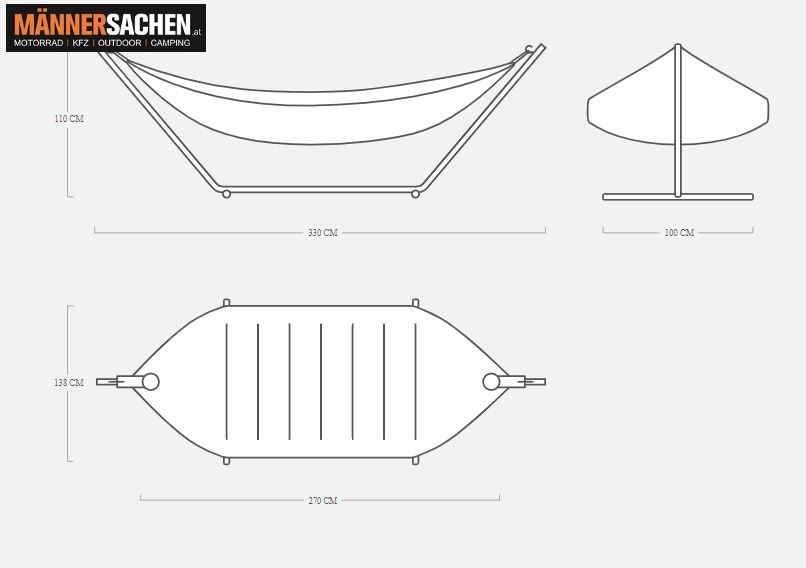 - Hängematte: 270 x 138 cm.