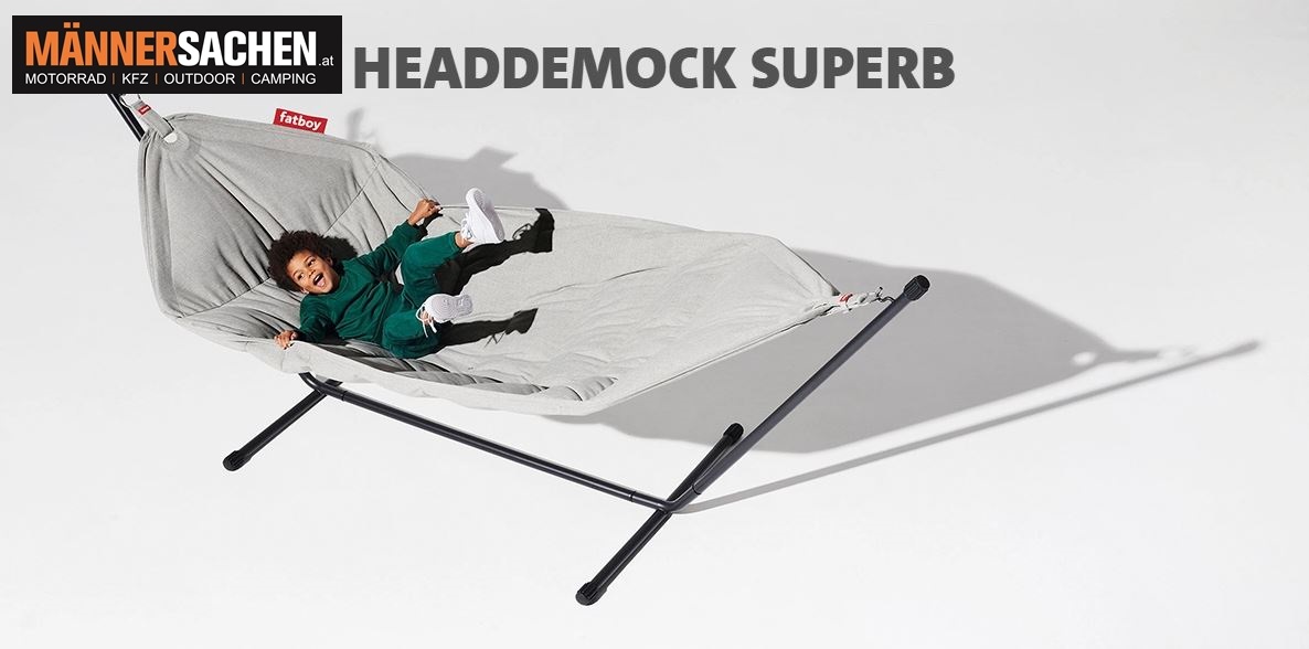 Die Fatboy Headdemock Superb ist eine komfortable Outdoor-Hängematte, die Platz für zwei Personen (bis zu 150 kg) bietet.