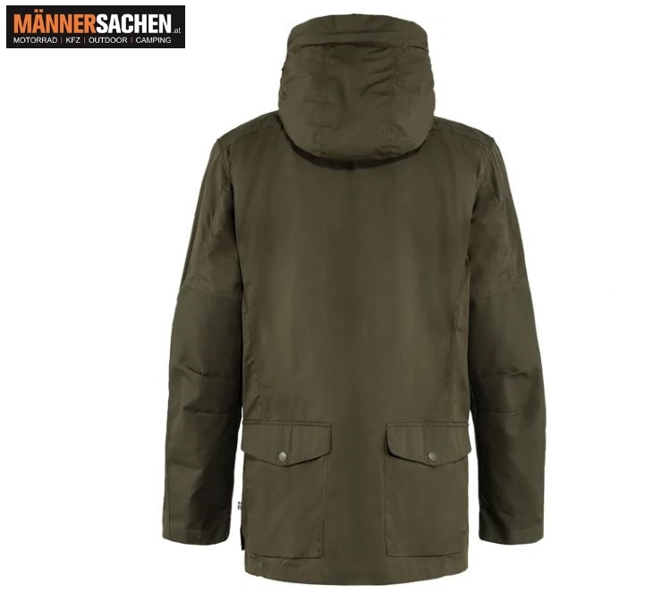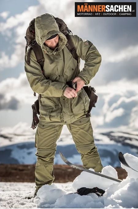 Strapazierfähige Outdoor-Jacke mit durchdachten Funktionen für anspruchsvolle Touren zu jeder Jahreszeit. Die Kapuze lässt sich regulieren, so dass sie perfekt das Gesicht umschließt. Dank einer neuen Schirmkonstruktion lässt sich der Schirm in zwei Stufen zurückbiegen, je nachdem, ob maximaler Windschutz oder mehr Sicht nach den Seiten gewünscht ist. Heruntergelassen bildet die Kapuze einen hohen Kragen, der Hals und Nacken perfekt wärmt. Zahlreiche Aufbewahrungsmöglichkeiten für Karte, GPS, Funkgerät und andere wichtige Dinge in zwei schräg gestellten Brusttaschen mit Patte, zwei großen Balgtaschen unten und zwei Taschen am Rücken. Außerdem ist die Jacke mit zwei Innentaschen, darunter eine Reißverschlusstasche, ausgestattet. Ein zusätzlicher Stoffkeil im Bereich der Achselhöhlen und eine Balgfalte hinten sorgen für viel Bewegungsfreiheit. Ärmelabschlüsse mit Knopfriegel. Die Jacke ist aus wind- und wasserabweisendem G-1000 genäht, einem Material, das aus Recycling-Polyester und ökologischer Baumwolle herstellt wird. Schulterpartie, Ärmel und Taschen aus extra kräftigem G-1000 HeavyDuty. Materialien und Details wurden so gewählt, dass sie die Umwelt möglichst wenig belasten - die meisten Lederdetails wurden beispielsweise aus Lederabfällen gefertigt - und exponierte Teile nach jahrelangem Gebrauch leicht ausgetauscht werden können.