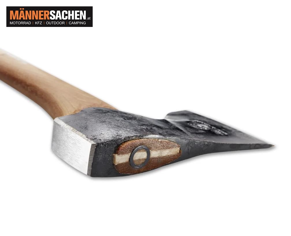 Die Fingerkerbe im Axtkopf ermöglicht einen festen Griff gerade über die Mitte der Schneide für erhöhte Präzision.