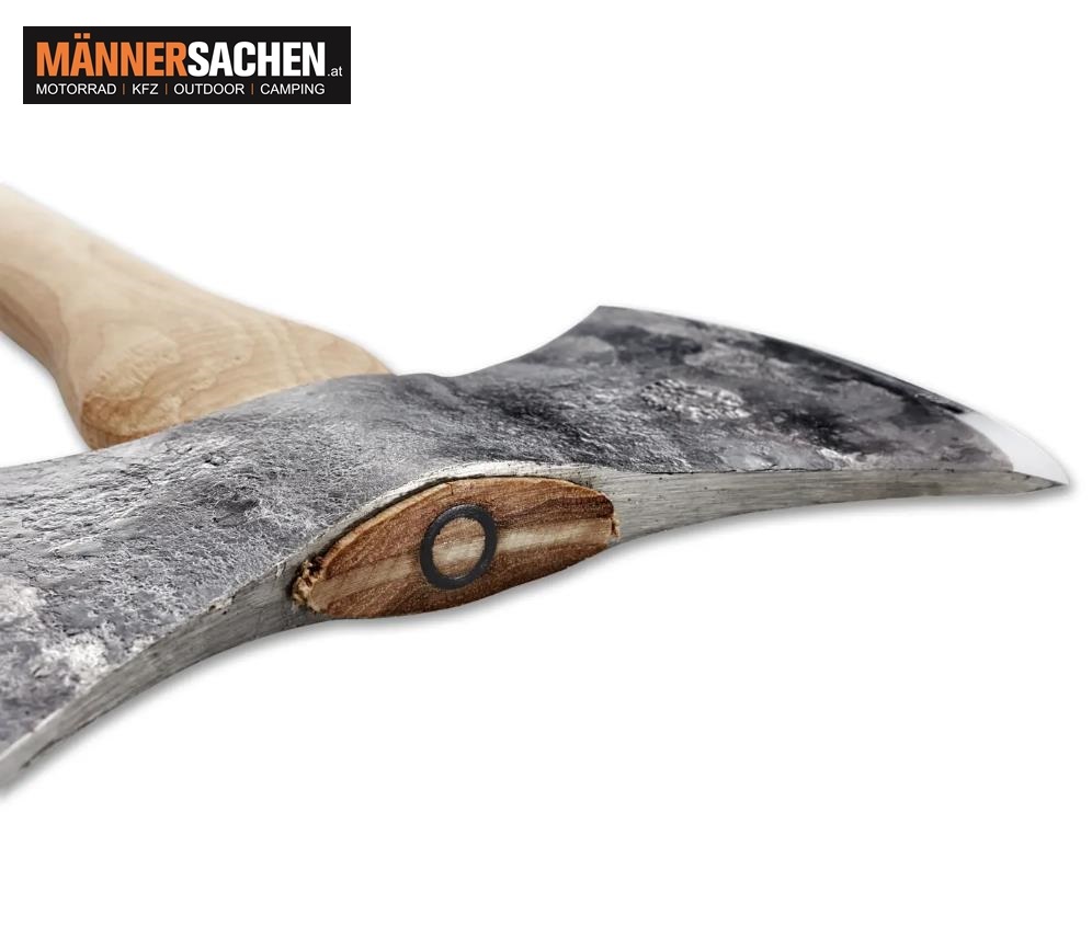 Diese Art von Doppel-Bit-Äxten wurde ursprünglich von Holzfällern benutzt, die davon profitierten, jederzeit eine scharfe Axt griffbereit zu haben.