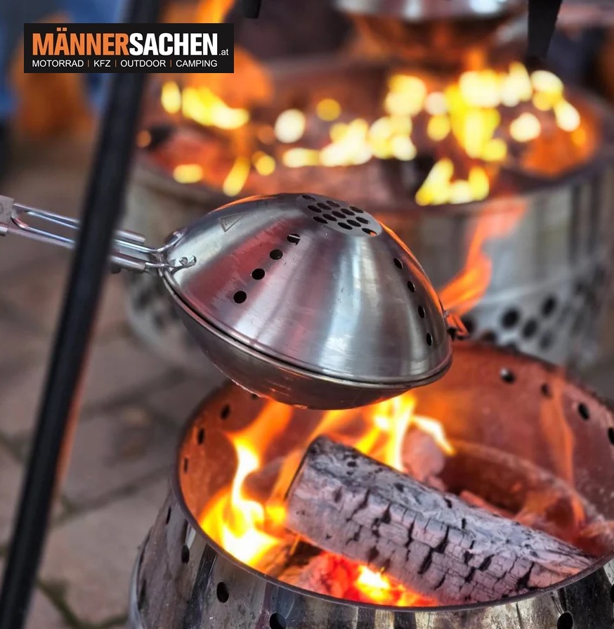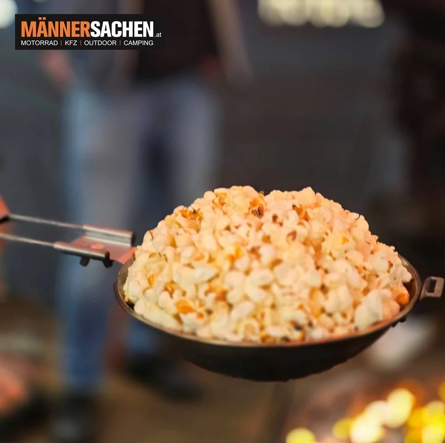 Popcorn direkt am Lagerfeuer – mit cleverem Siebsystem für ungepoppte Körner und einfachem Schiebeverschluss, der ein Aufspringen zuverlässig verhindert.