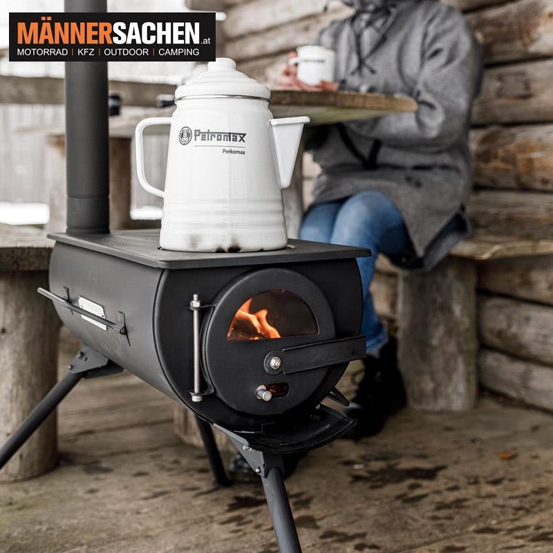 Gleichzeitig dient der Zeltofen als stabiler Herd und als Draußen-Kochstelle.