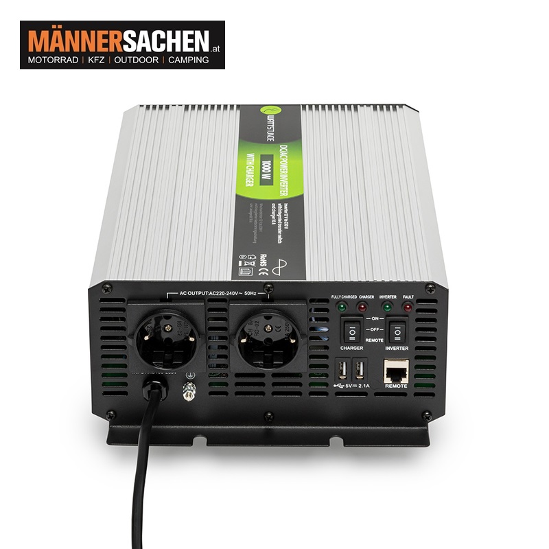Kombigerät mit NVS - 1000W 12V Sinus Spannungswandler und 10A Batterieladegerät