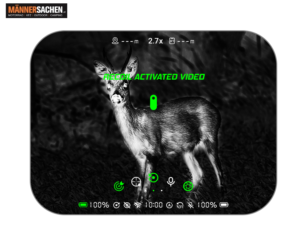 Die rückstoßaktivierte Video- und Pre-Recording-Funktion wird bei Erkennung eines Rückstoßes ausgelöst und nimmt die 10-Sekunden-Spanne vor und nach dem Schuss auf.